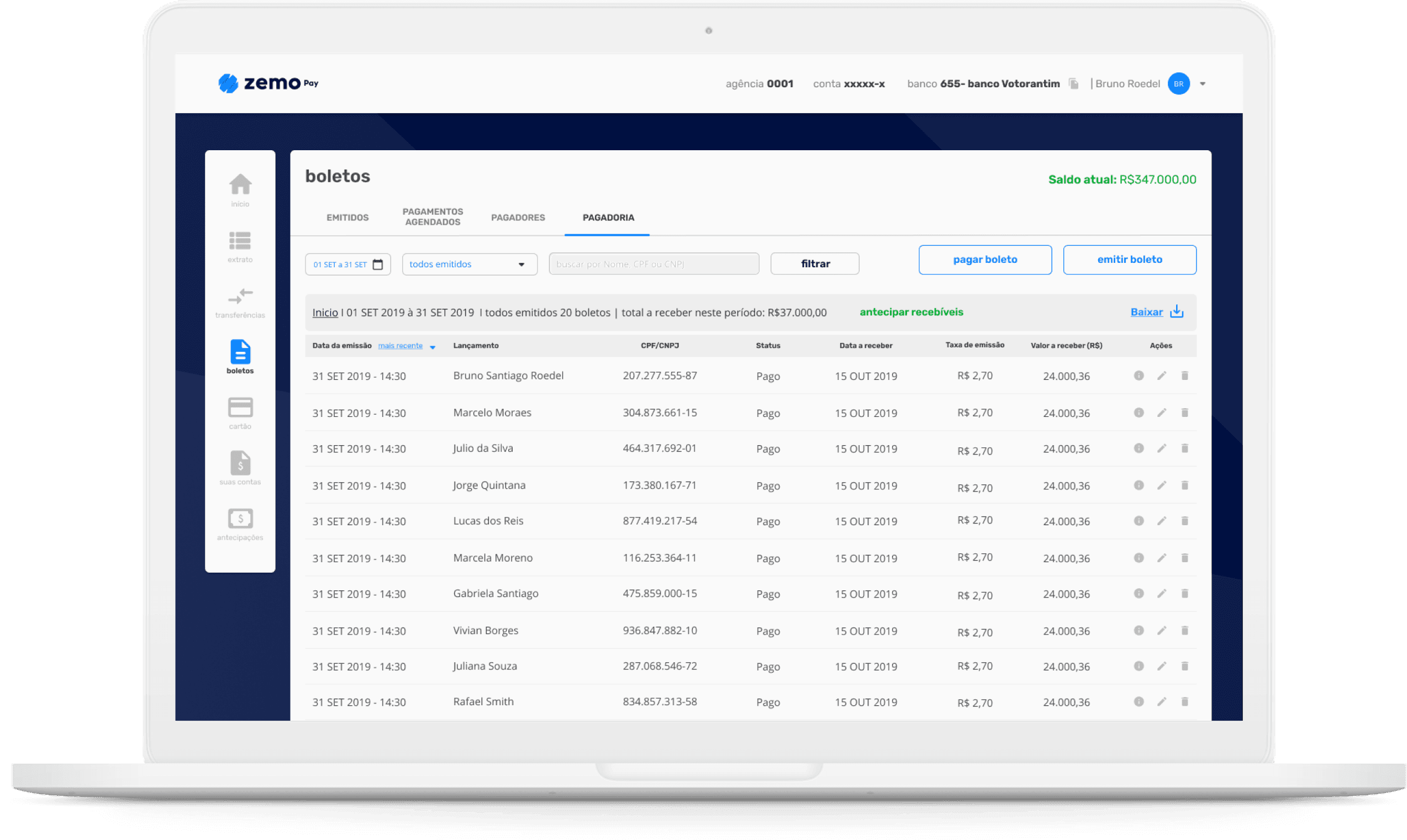 Ao contratar o pagadoria, sua conta digital pessoa jurídica será aberta para gerenciar os pagamentos e desfrutar de outras funcionalidades essenciais para o seu negócio.